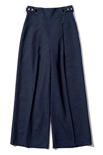 デニムのようなこなれ感も漂うインディゴカラー。ウエストの両サイドにデザインをきかせ、トップスを裾インしてもサマになる仕様に。