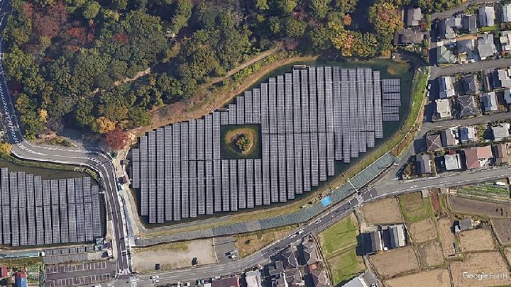 古墳の周りを埋め尽くしたソーラーパネル(奈良県)ⒸGoogle