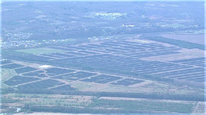 釧路湿原には、見渡す限りのソーラーパネルが設置されており、およそ360万平方メートルにも及ぶ広大な土地は、まるでソーラーパネルの畑のようです。
