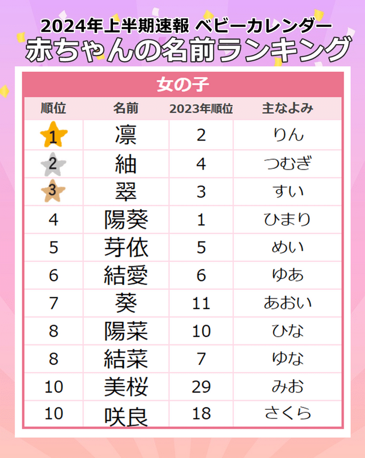<2024年上半期女の子>人気の名前ランキングTOP10