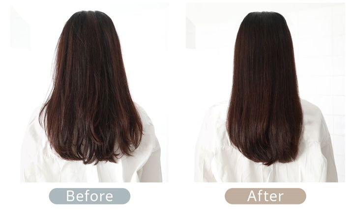 “髪に熱を与えるとダメージになる”というイメージがありますが、“ちょうどいい温感”は髪にツヤ感とまとまり感を与えてくれます。(一般的に、熱が髪のダメージとなるのは髪の温度が 100℃を超え、髪内部の水分が蒸発してしまうことが原因)