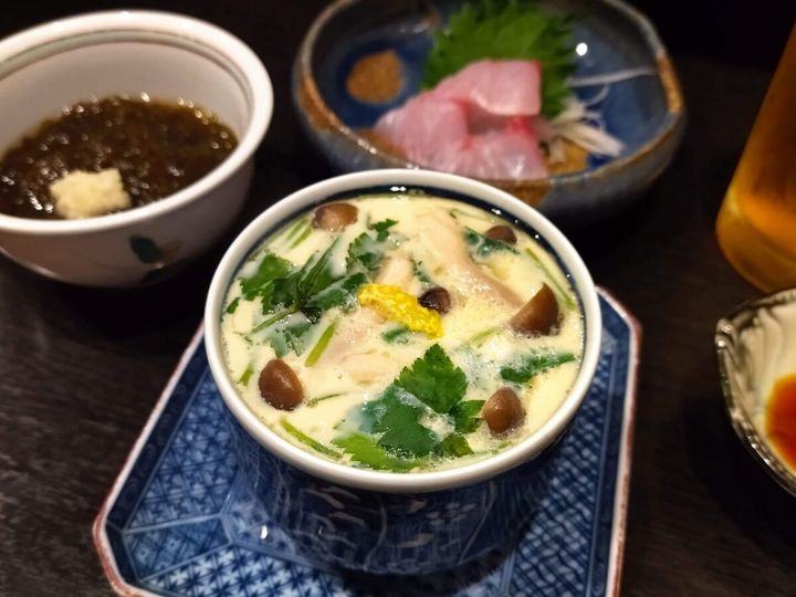 1件目はお腹を満たす「美亭(よしてい)」。モズクや刺身の先付に始まり、茶わん蒸し、串焼き、締めにはチャーハンなどとレパートリー豊富で食べきれないほどお腹は満足。