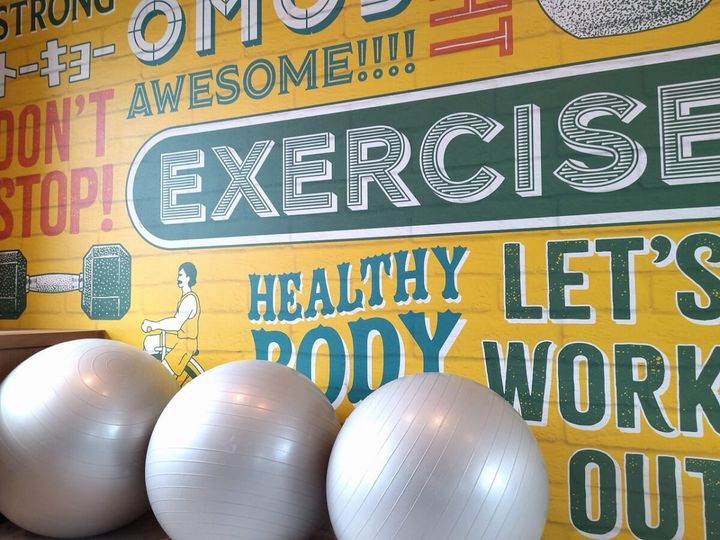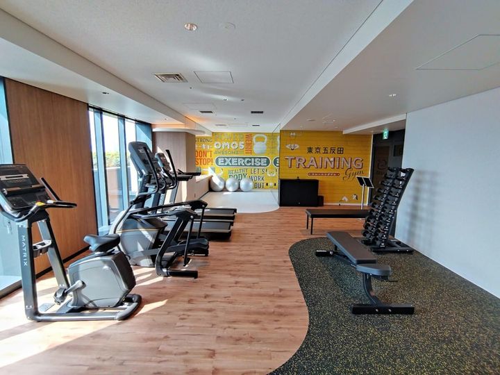 もうひとつOMOとして初めてなのが、トレーニングジムがあること。ランニングマシンやダンベルなどに加え、バランスボールなどもそろっており、ポップな黄色の壁面の前ではフォトジェニックな写真も撮れそう。