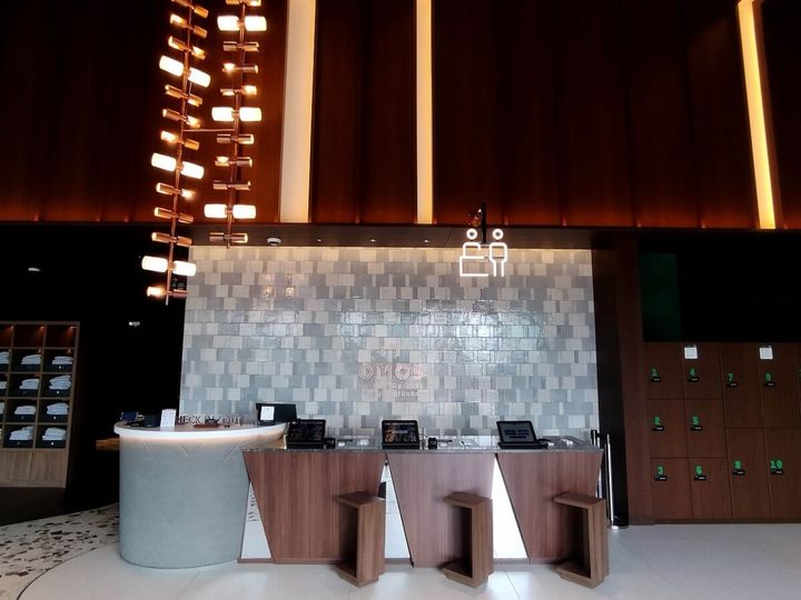 五反田のきらびやかなネオンや飲食店街を彷彿とさせるエントランス。テンションあがる“街ナカ”ホテルを連想させる“OMO(オモ)”らしい演出に迎えられます。このきらめくネオンサインからは一転、灯りの落とされたエレベーターで地上約60mの14階へ。