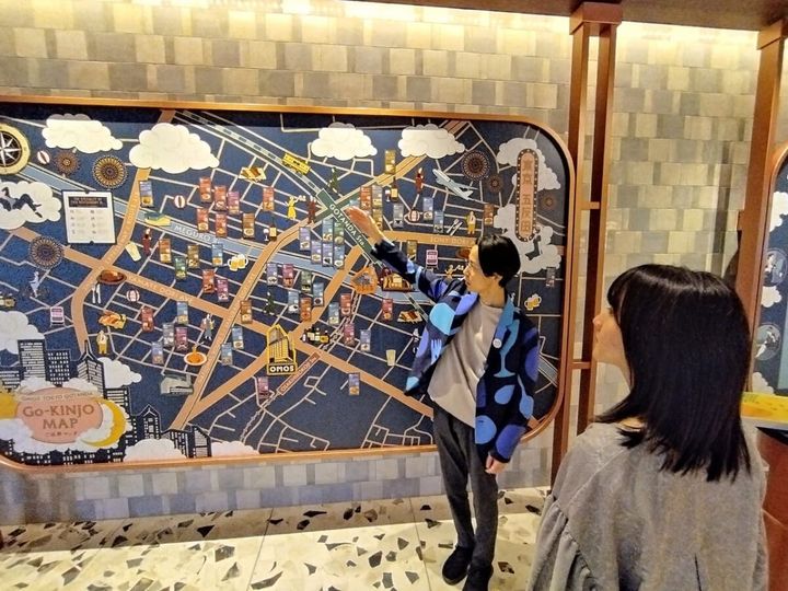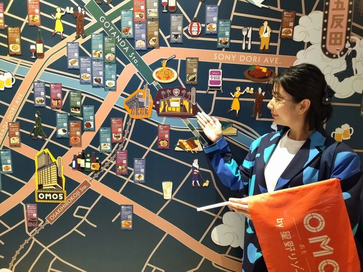 スタッフおすすめの店などが紹介されている「ご近所マップ」前では、16~18時の間、五反田の街を知り尽くしたOMOレンジャーが、ゲストが選んだテーマに沿ったお店を紹介してくれる「五反田ご馳走レセプション」を開催。タブレットや紙芝居風の紹介が、つい引き込まれそうなほど面白い! 街に出かけるときには、フレンドリーなスタッフにアドバイスしてもらうとより一層楽しめますよ。