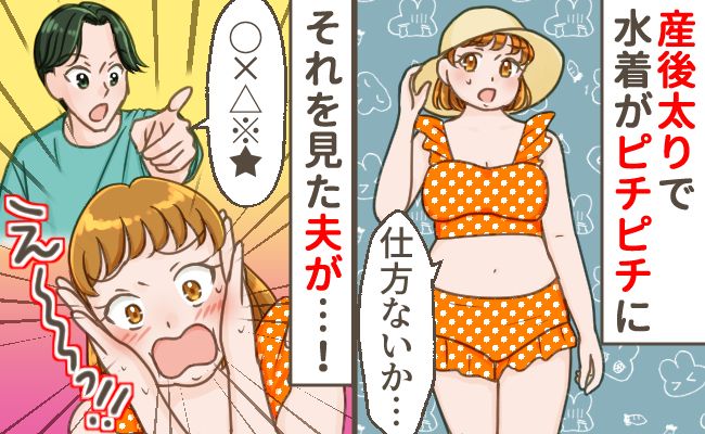 「そんなとこ見てたの!?人前で言わないで!」産後太りで水着がピチピチ⇒夫の一言で頭が真っ白に…