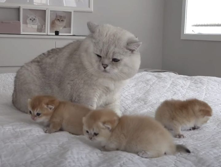 「えっ?ボクがお世話するの?」子猫の子守りを頼まれて焦るパパ猫。