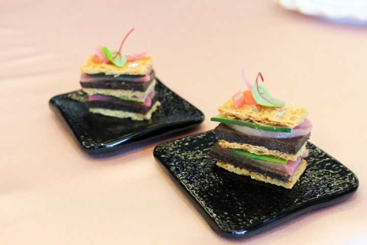 デラックスアフタヌーンティーには「和牛頬肉と桃のミルフィーユパイ」がついてきます。