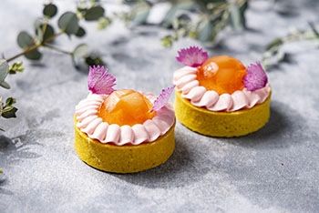 パッションフルーツとオレンジのムース 桃とラズベリーのクリーム