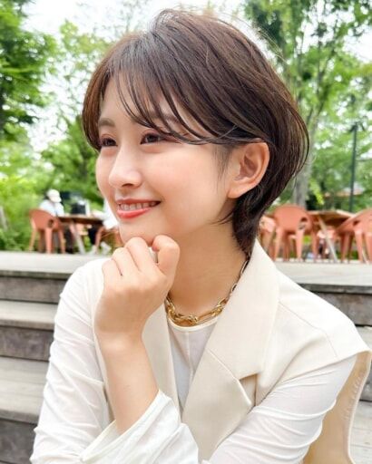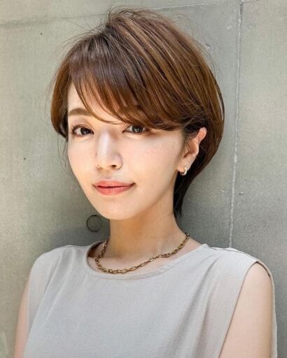 なので、ショートヘアにする時は抜け感を強調しやすくするために、首元にある程度ボリュームが出る下重心のスタイル作りを意識しましょう。特にベーシックなAラインシルエットのスタイルや、無造作なスタイリングを施したスタイルがおすすめです。