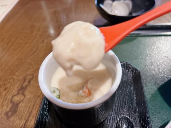 茶碗蒸しは、中にエビと、私の勘違いではなければカニが入っていました♪ とろとろ!