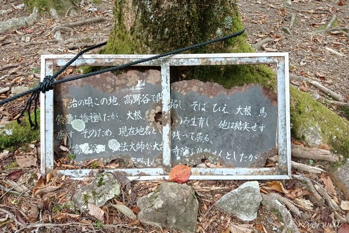たとえば、明治初期にはじめて行われた「開拓跡」。画像にある通り、ある者がさまざまな野菜を育て開拓しようと試みたものの、厳しい自然を前に1年余りでとん挫したという記録が残されています。現在は、やや開けた森の状態が開墾跡の名残を感じさせます。