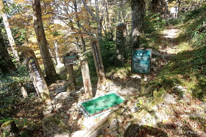 受講完了の証である認定印を認定証に押され、晴れて入山資格が得られます。西大台の入口にて係員へ認定証を提示し、植生保護の観点から、緑のマットで靴についた泥などを落としたら、いよいよ入山スタートです。