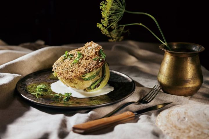カリフラワーの炭火焼き ミントヨーグルト胡麻ソース(3,800円)