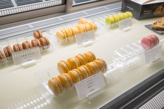 常に数種類用意されるピエール・エルメ・パリのマカロンにくわえ、山本の酒粕を使ったカフェオリジナルの「シラカミ」も注目です。箱入りのテイクアウト商品もあるので手土産にもおすすめです。