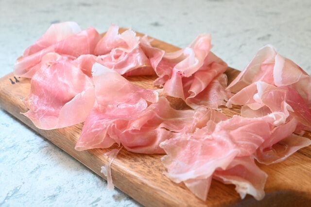ふわっと柔らかな生ハムは、原木を注文ごとにスライスして提供。酒造メーカーが提案する味も魅力のひとつです。