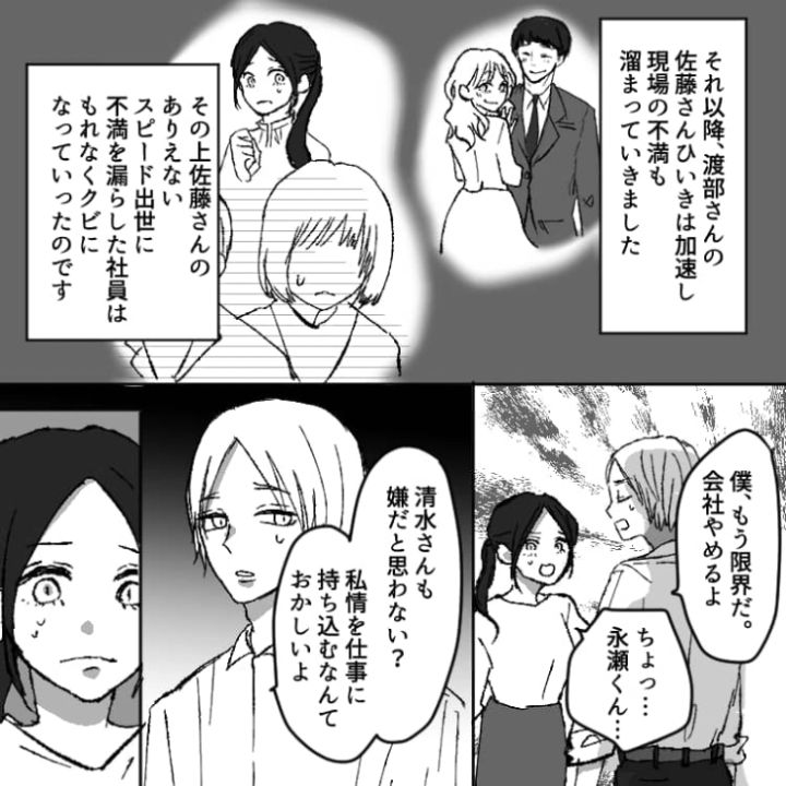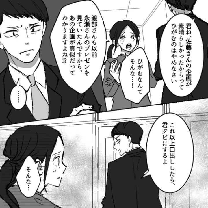 同僚のプレゼンを盗作して採用された女!異例のスピードで出世していくので怪しんでいると上司とデキていた・・・