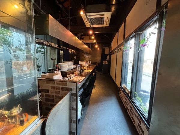 店舗は古民家を改装したもので、オーナーのこだわりのお店なのだそう。 店内は外装と同じく、黒が基調のシックな内装。 窓からやわらかな光が差し込みます。 この日はラルクやモー娘。などの懐メロが心地良いテンポでアレンジされたBGMが流れ、30代後半のミハスにぶっ刺さりました。 夜は照明を暗めにし、より一層上質さを感じられる空間になるようです。