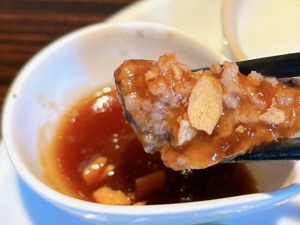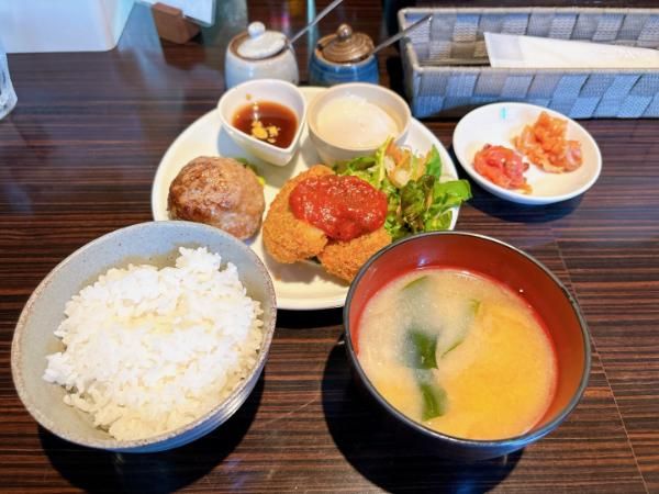 ご飯は羽釜で炊かれた糸島産ヒノヒカリで、甘みがありつややかです。 和牛と糸島の雷山豚を使用し、旨みがぎゅっと濃縮されたハンバーグはまんまるで厚みがあり、100gでありながら食べ応えは抜群。 ソースは4種類から選ぶことができます。 デミグラス、ジンジャーの順でよく出るそうですが、ガツンといきたい私はにんにく醤油をチョイス。 ソースにディップしてにんにくチップをのせると最高に美味しい! サラダの自家製ドレッシングは、レモン風味で食欲増進させます。 お味噌汁やカレーコロッケにかかったソースも全て手作りなんだそう。