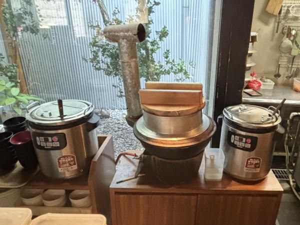 ところでみなさま、羽釜ってご存知ですか? 読み方は「はがま」で、写真のように側面にツバがあるのが特徴です。 羽釜は厚みがあり、全体に熱がしっかり行きわたるため、ご飯が美味しく炊けるそうです。 こちらの羽釜は一升炊きなんだとか。 1つ1つにこだわりを感じます。