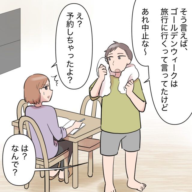 3. [6-1]自分が言い出した家族旅行も悪びれなく「あれ中止な。」自分勝手な見下し夫|ママ広場マンガ