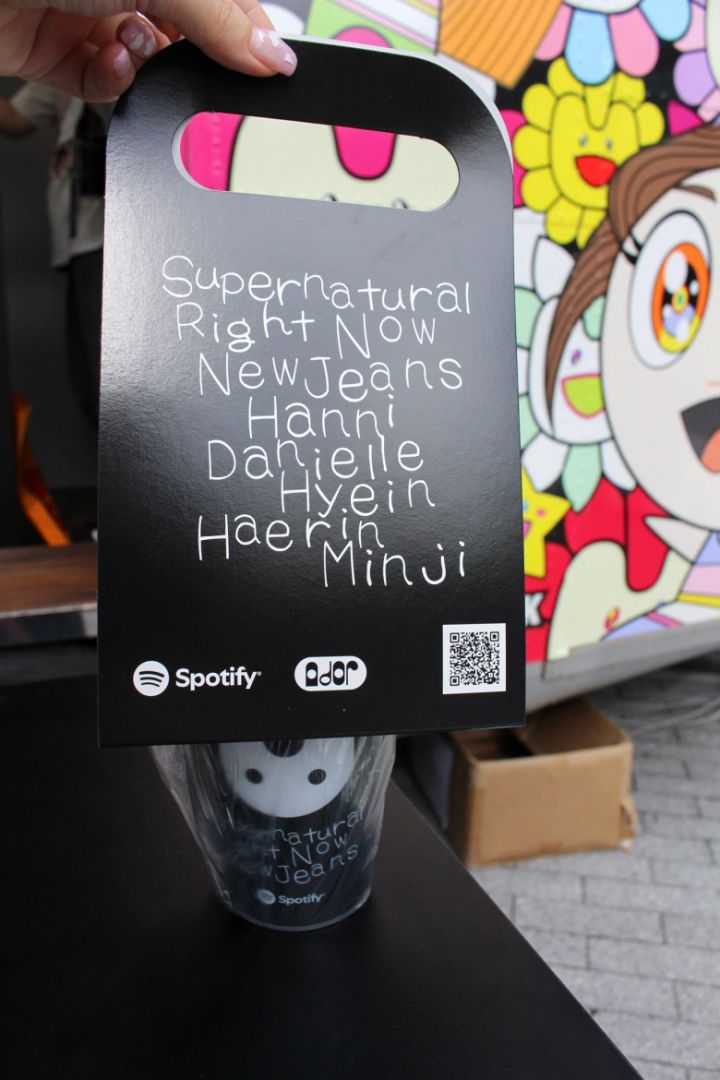 今回の『Spotify x NewJeans “Supernatural” POP-UP EXPERIENCE』の来場者には、「SuperNatural」のオリジナルデザインが可愛い「Spotify x NewJeans カップホルダー付リユースカップ」をプレゼント!