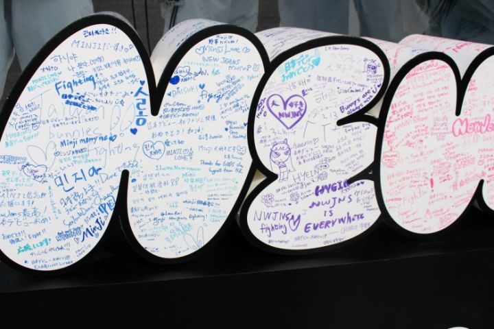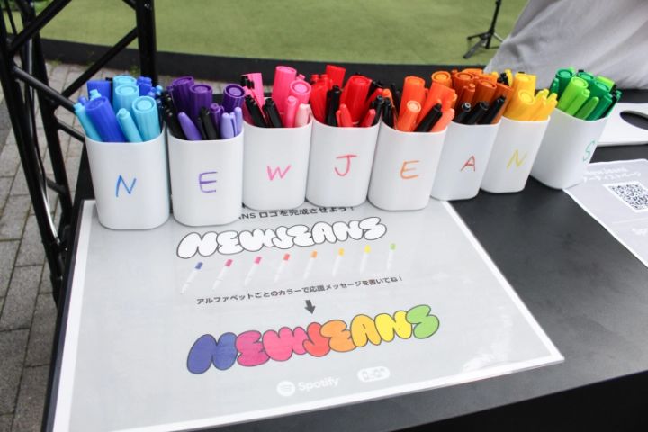 奥に進むと、NewJeansのロゴオブジェに応援メッセージを書くことができます。