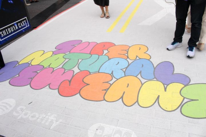 Spotifyが開催する今回のPOP-UP『Spotify x NewJeans “Supernatural” POP-UP EXPERIENCE』は、宮下パークの目の前、渋谷キャストガーデンにて開催しており、大きく掲出されたNewJeansのビジュアルが目を引きます。