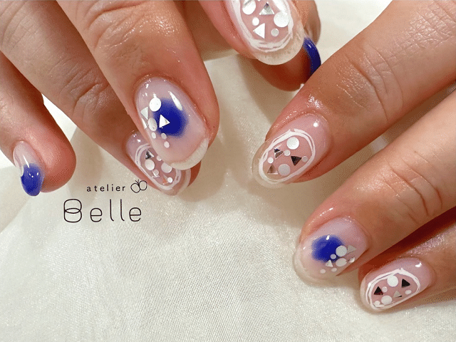 パキっとしたブルーをポイントで使用することで、初めてブルーネイルをする方にも抵抗感なく挑戦していただけます!