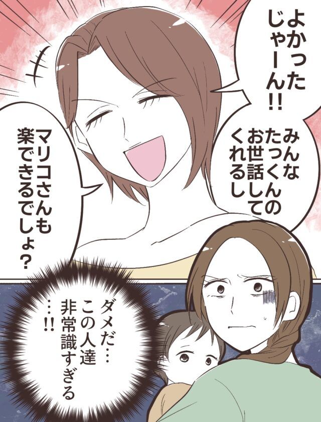 「よかったじゃーん!!みんなたっくんのお世話してくれるし、マリコさんも楽できるでしょ?」