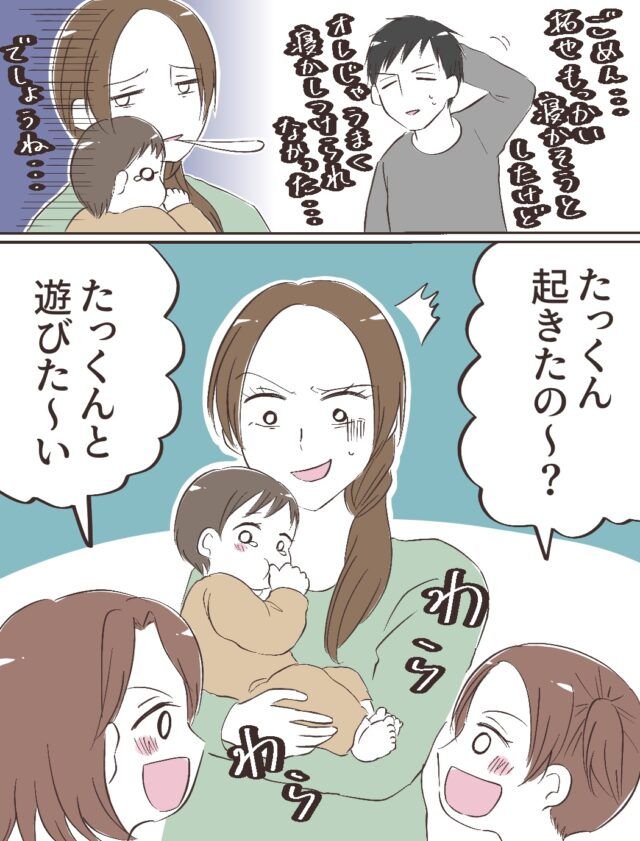 「ごめん・・拓也もっかい寝かそうとしたけど、オレじゃうまく寝かしつけられなかった・・」