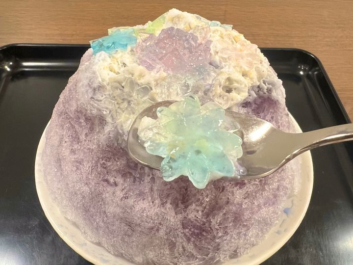 あじさい色シロップで紫陽花が咲き誇る様子を表現したかき氷。