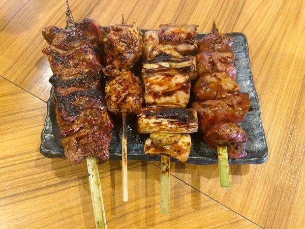 ★やきとりの盛り合わせ(土佐備長炭で焼き上げたやきとりは、口の中に入った瞬間美味しさが広がります。タレもとても美味しくてごはんがすすみました。)