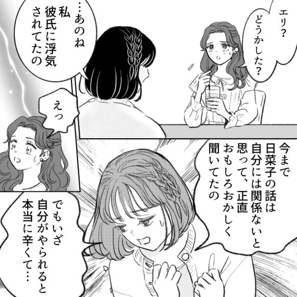 エリは、彼氏がいても平気で浮気をする日菜子をおもしろがっていたけれど……?