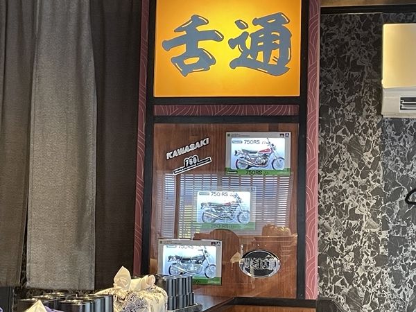 さて、店名の「舌通」は、1970年代に製造販売されたオートバイの通称Z2(ゼッツー)から名付けたそうです。いつかはオーナーになって乗りたいとのことで、店内には3台のZ2が展示されていました。納得!