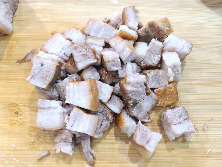 5.  時間が経ったら取り出して、炒飯に使用する分を切ります。ゴロっと感を出したいので、大きめの角切りにカットします!残りは薄くカットして、軽く焼いて食べるとおいしいですよ♪