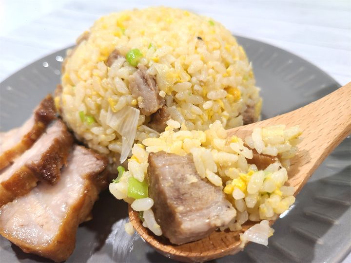 そんな絶品チャーシューがゴロゴロッとたくさん入っている炒飯は、確かに「最高傑作」といえそうです。卵とご飯をしっかりと絡めて炒めたのでパラっとした食感にすることができ、最後に加えた煮汁が味の決め手になっています。豚肉の旨味と長ねぎの香りがしっかりとついている煮汁によって、いつもとは違った深いコクのある味付けが出来ました。ジューシーなチャーシューによって食べ応えもありますよ♪