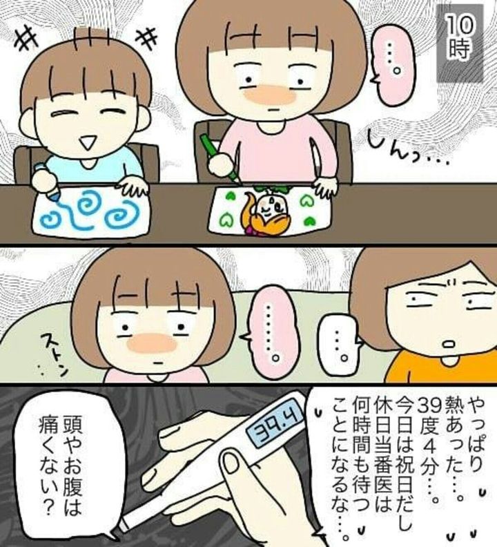 救急搬送された先の病院での診療後、意識が戻ったあーちゃん。しかしどこか様子がおかしく、言葉を発しません。まさかけいれんによって何か体に影響が出たのではと不安になる加藤かとさんと夫ですが、その後あーちゃんは無事に回復し今は元気に過ごしているそうです。