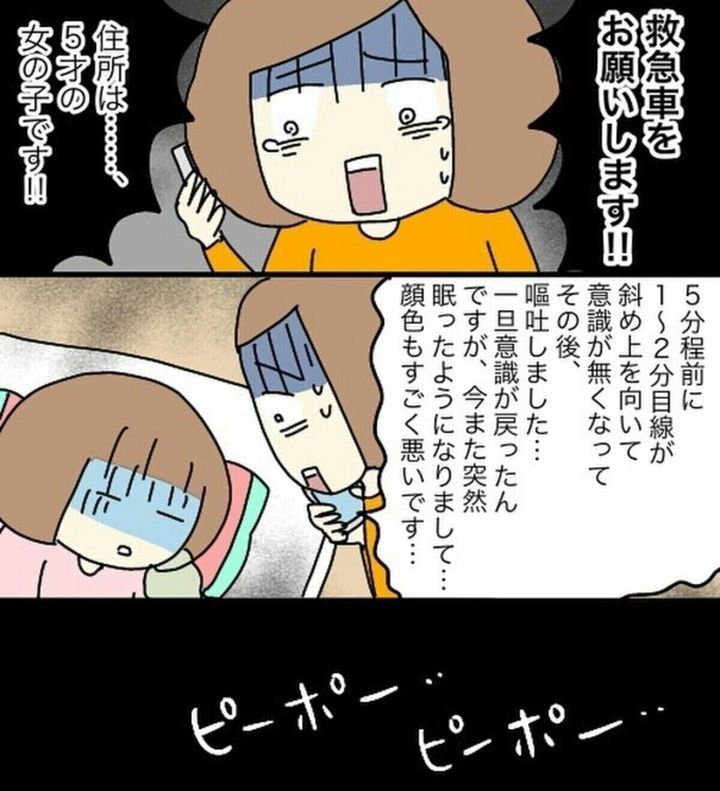 パニックになりながらも、救急車を呼んだ加藤かとさん。あーちゃんの顔色や様子の異常さに恐怖を感じている様子です。