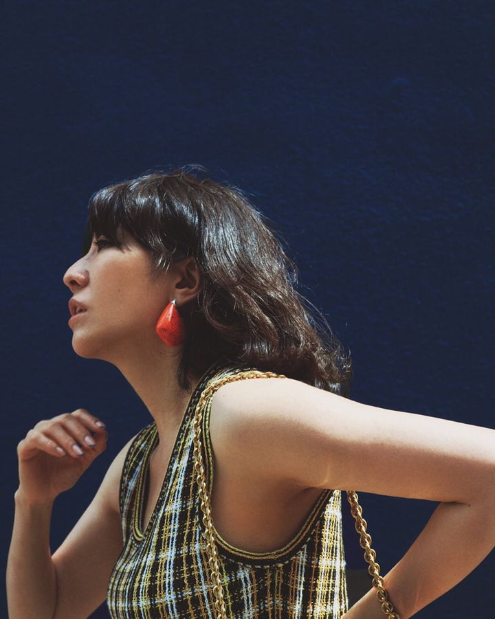 ピアス¥228,800、トップス¥201,300、バッグ¥632,500(全てボッテガ・ヴェネタ/ボッテガ・ヴェネタ ジャパン)