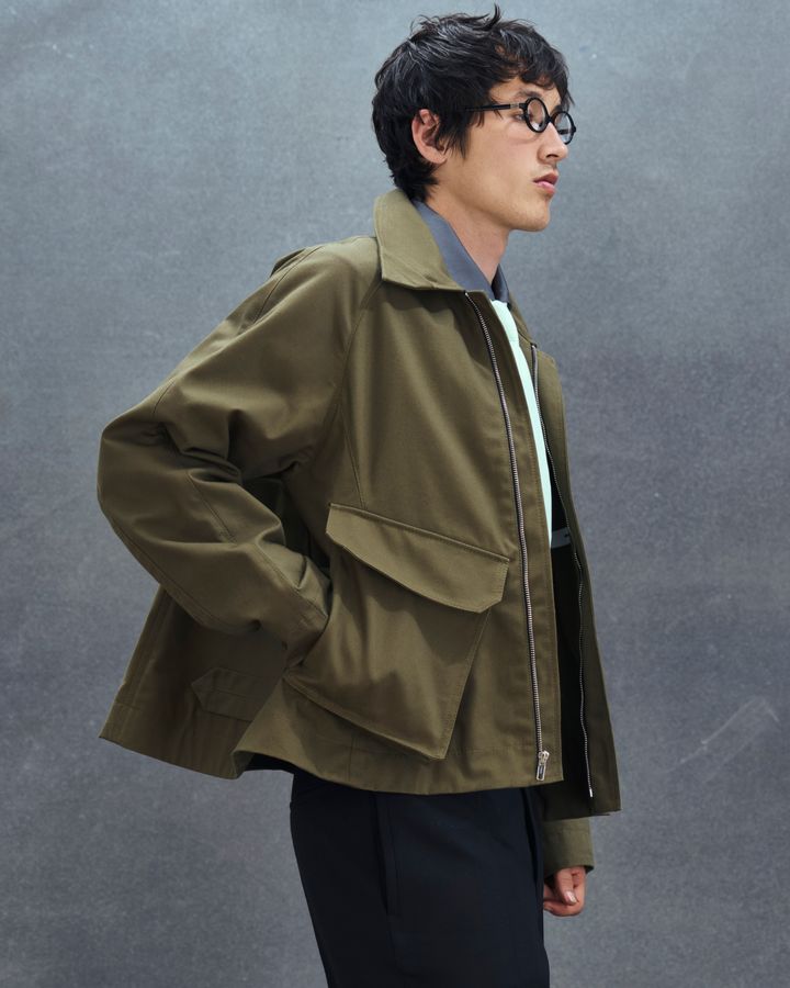 中国の伝統的なベストとミリタリーのカーゴベストにヒントを得たルック。