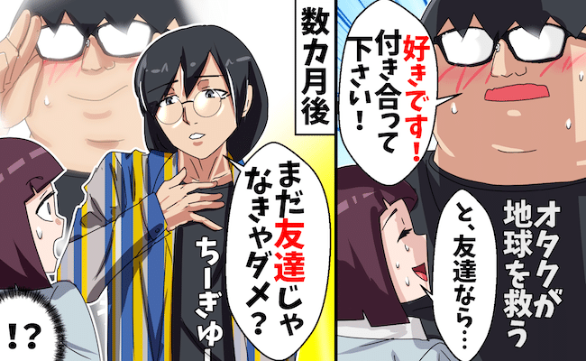 それから数日後。仕事が終わり帰宅しようとしたとき、同僚に声をかけられ「す、す、好きです! 付き合ってください!」と突然告白されたのです! 一瞬気持ちが揺れたものの、今はまだ恋人を作る気にはなれなかったため、「友だちなら……」と彼からの告白を断りました。