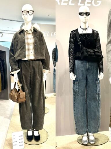他にも、カーゴジーンズやカーゴパンツ、コーデュロイのバレルレッグボトムスがラインナップしており、サイズも丈感もバリエーション豊富なので、自分の体系や好みにあったボトムスを見つけられるはずです。