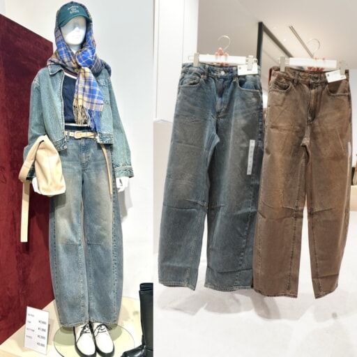 プチプラながらもそうは見せないこだわりが詰まった「GU」では、樽(バレル)のような曲線が印象的な「バレルレッグジーンズ」が登場。