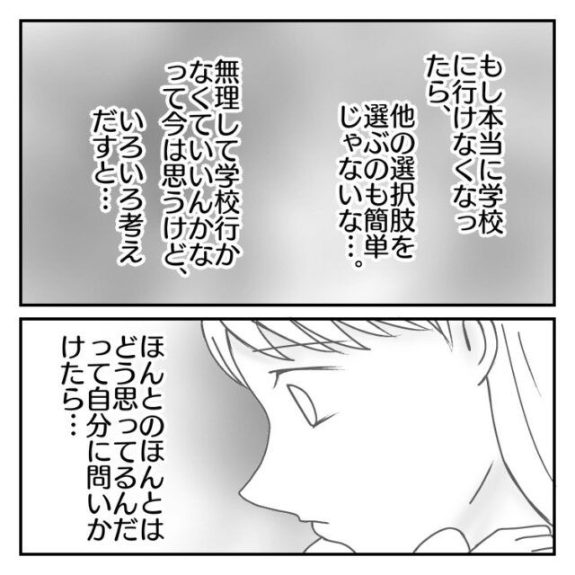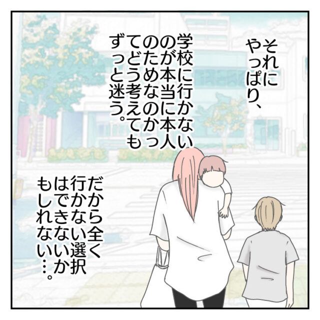 無理してまで学校に行かなくても良いという思いと、現実的な問題を考えたときの葛藤・・・苦しいですね。