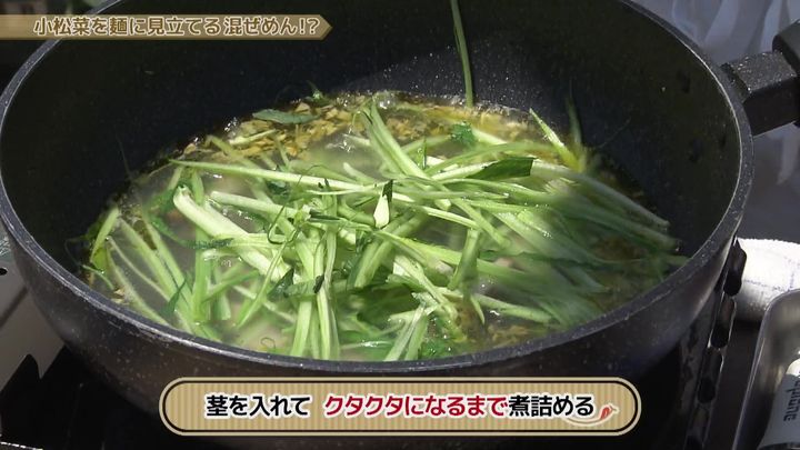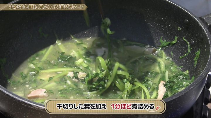 それでも3分ほど煮詰めていくと、下國シェフの言う小松菜の "麺化" が!?