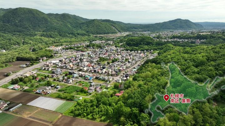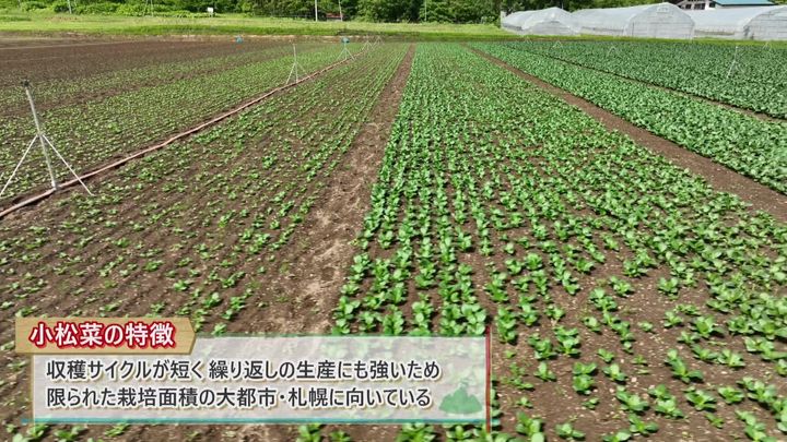 札幌中心部から車でおよそ30分ほど…深い緑の山々に囲まれた小松菜畑が広がっています!