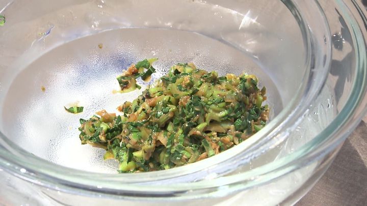 バターの油分を固めるため、氷水のボウルで冷やせば、リエットの完成!