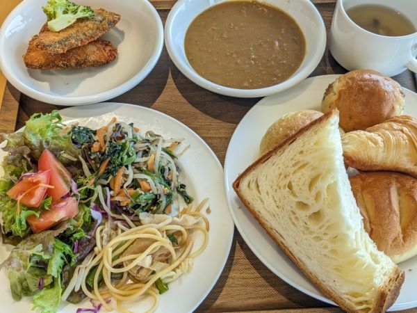 デニッシュパンは風味が豊かでリッチなテイストですが、軽めの食感なので、ペロリと食べられますよ。他のパンも、フワフワでとってもおいしいんです。おかずはどれも、程よく薄味で、できるだけ添加物を使わずに作っているとのことですよ。 ドリンクだけお替わりしてゆっくりしたのですが、帰る時にもう1度見てみたら、スープは片方がミネストローネに、鮭のフライが回鍋肉に、パンも種類が変わっていました。混んでいれば、同日でもメニューが変わるほど、メニューが豊富です。因みに前回はスパニッシュオムレツもあったのですが、ブロッコリーが沢山入っている優しいお味で体も喜ぶ一品でした。