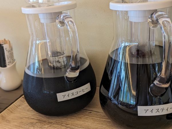 そしてドリンクまで付いています。ホットコーヒー、紅茶に加え、ハーブティーや緑茶のティーバッグ、さらにアイスコーヒーとアイスティーもあり、ラインナップが豊富です。ポットに冷たいミルクも用意されているのも嬉しいです。